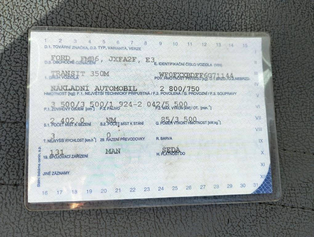 Nákladní automobil Ford Transit 350M, 2.4d, 85 kW, RZ 4SF3155, 2007, stav tachometru 280.184 km