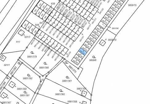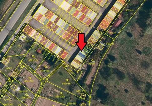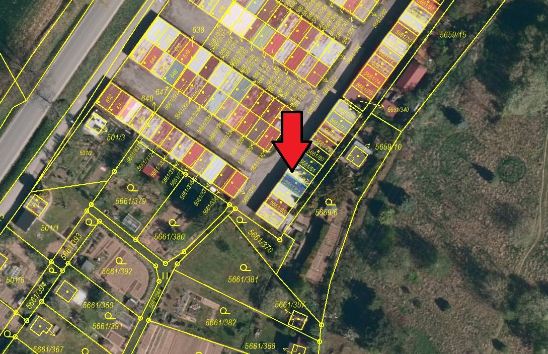 Garáž č.e. 738 stojí na pozemku parc. č. 5661/83 (parcela ve vlastnictví jiného vlastníka – Statutárního města Jihlava, LV 10001)