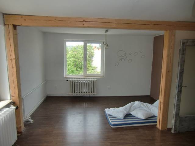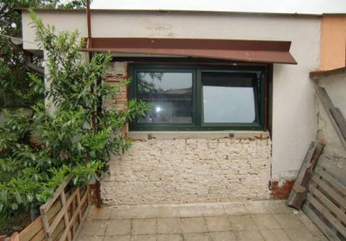 místnost a malý sklípek. Vpravo za domem je postavena zděná vedlejší stavba