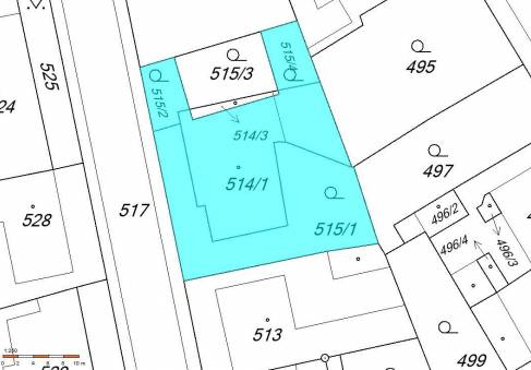 je postavený převážně na vlastním pozemku parc.č. 514/1 a z části na pozemku