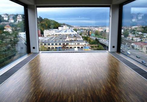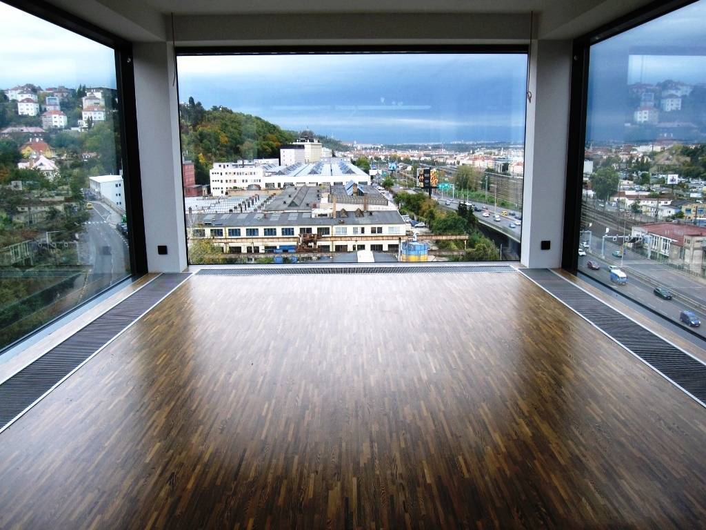 velkoformátovou dlažbu, masivní dřevěné podlahy, centrální topení s