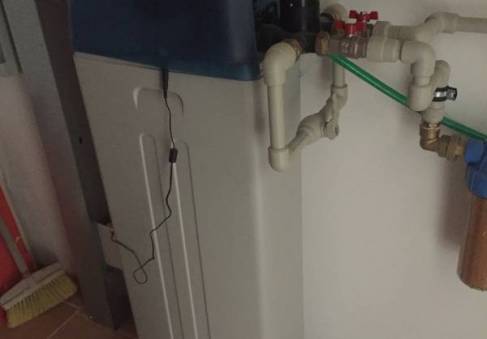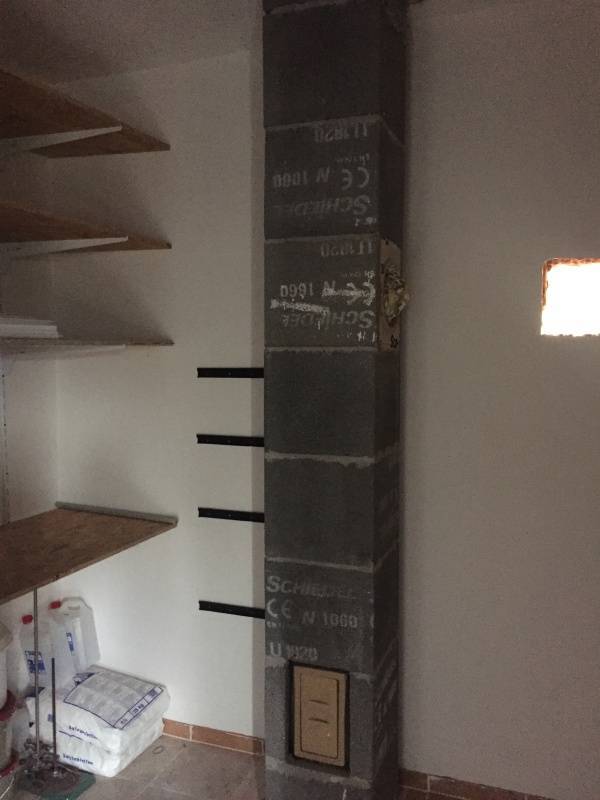 Vytápění domu je ústřední, tepelným čerpadlem, a kamny na tuhá paliva (s