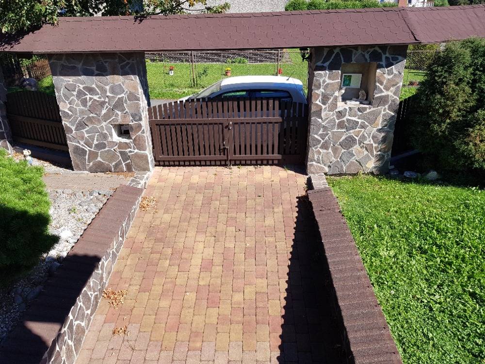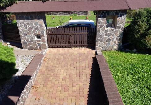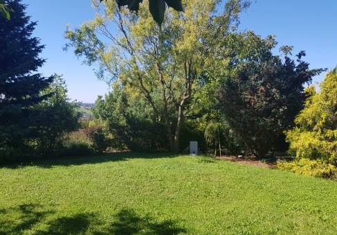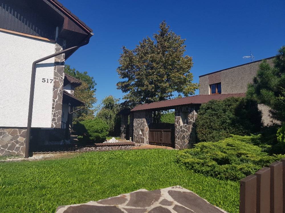Na zahradě se nachází ovocné a okrasné stromy a keře, různého druhu a stáří a také pergola s krbem.