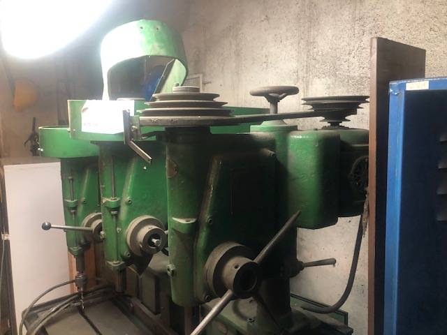 Robustní, spolehlivý stroj s nastavitelnými převody pomocí klínových řemenů (každý zvlášť nahoře). Vhodný do dílny i menší výroby.