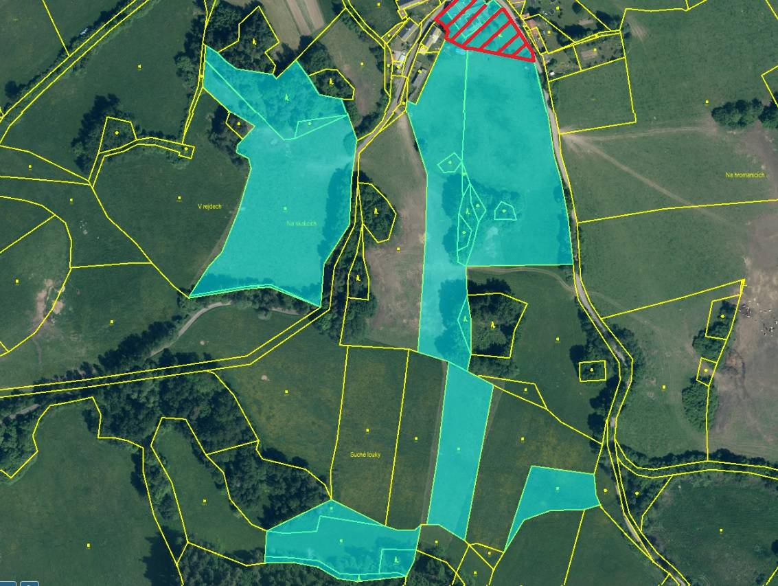 Prodej souboru 26 pozemků - lesní, travní porost, orná půda, ostatní plocha, celková výměra 75.440 m2, k.ú. Sluhov, Kolinec