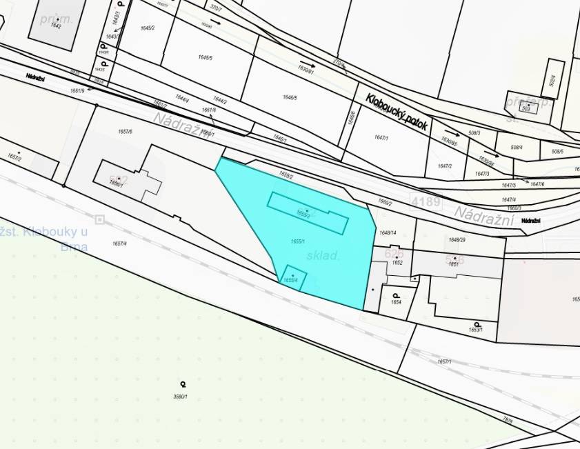 -           pozemek parc. č. 1655/4, o výměře 68 m2, zastavěná plocha a nádvoří, jehož součástí je stavba, budova bez č.p./č.e., jiná stavba, v části obce Klobouky u Brna, stavba stojí na pozemku parc. č. 1655/4