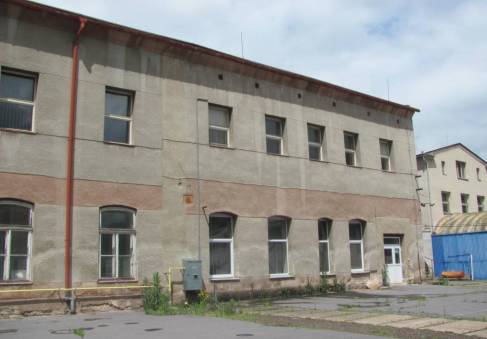 budovy a haly, administrativní budova, bývalá vila, drobné staby skladů,