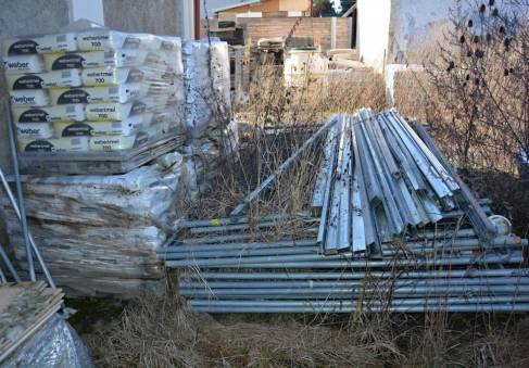 Trubkové lešení- 20 ks trubek, podlážky (3,5 palety), patky |