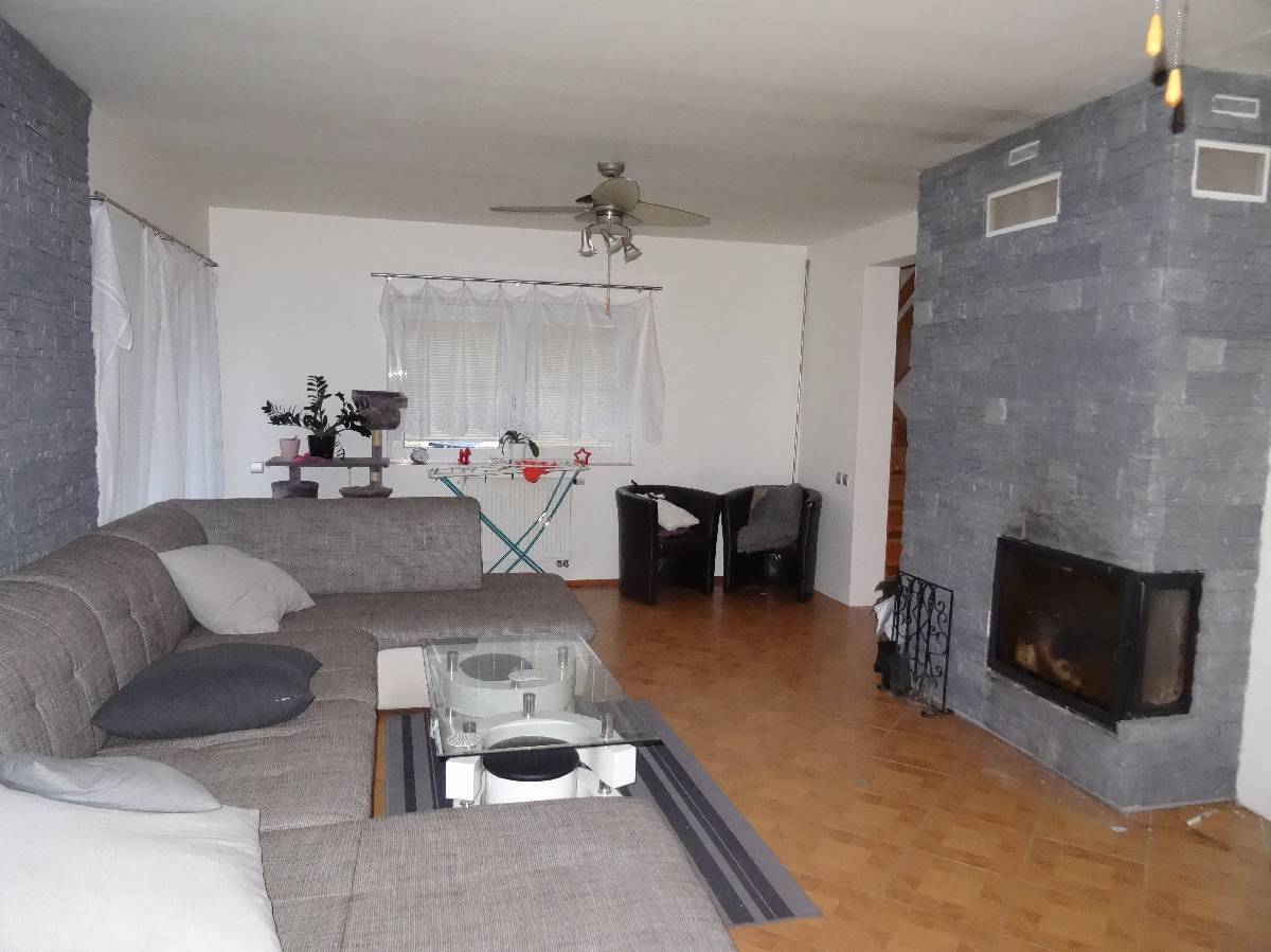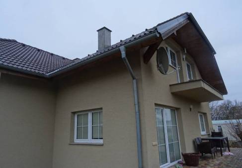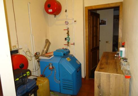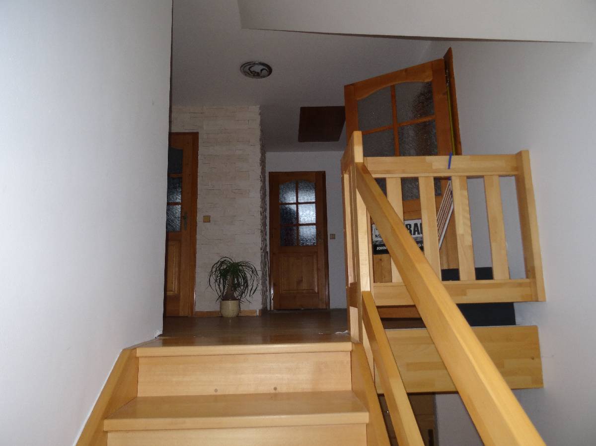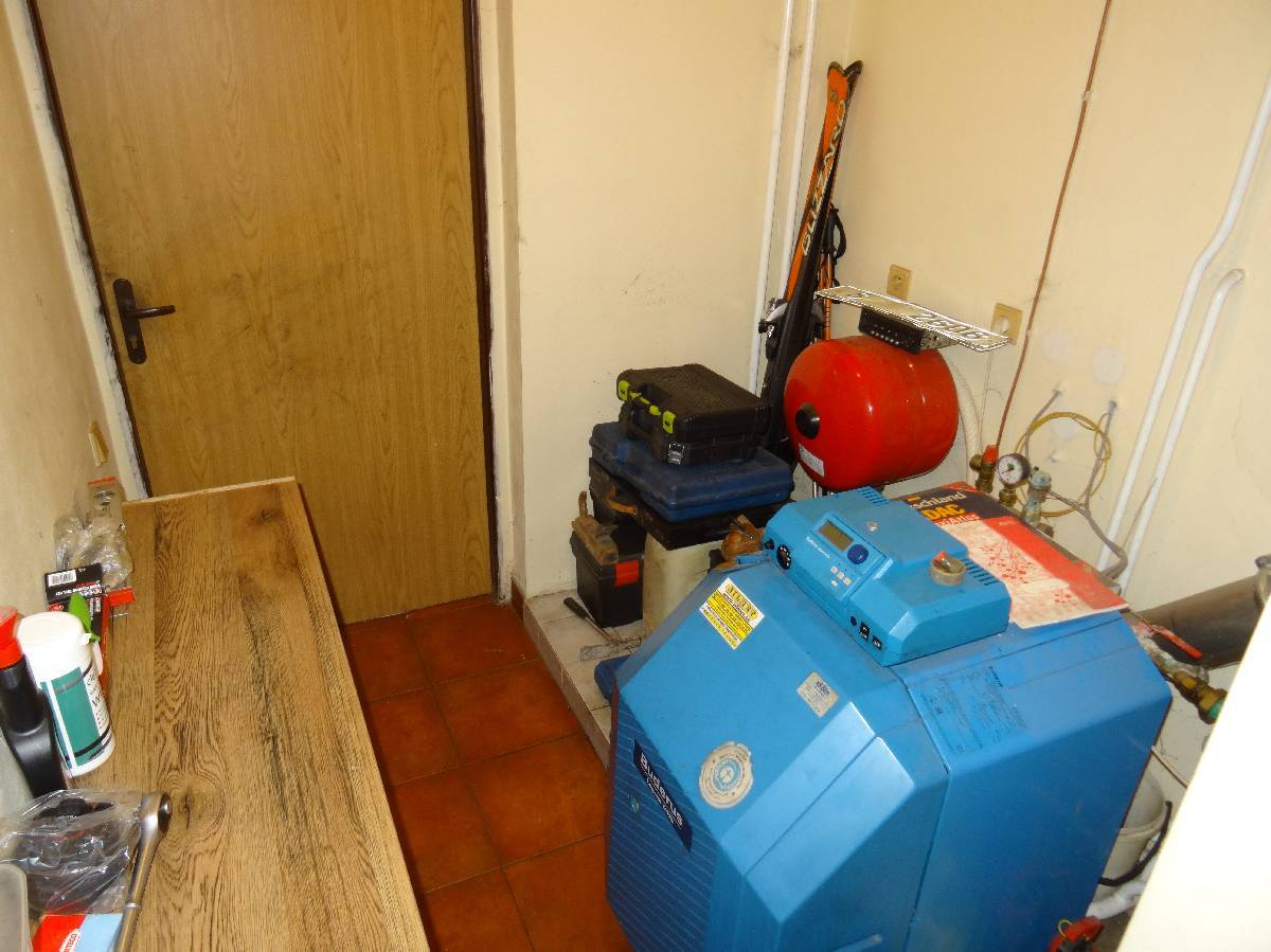 Obklady běžné keramické, schody do podkroví betonové s dřevěným obkladem, okna plastová, podlahy keramická dlažba, PVC, plovoucí laminátová. Vytápění ústřední teplovodní do radiátorů kotlem na topnou naftu, doplňkově krbem. Elektroinstalace světelná, třífázová, zdroj teplé vody je bojler. Plyn není.