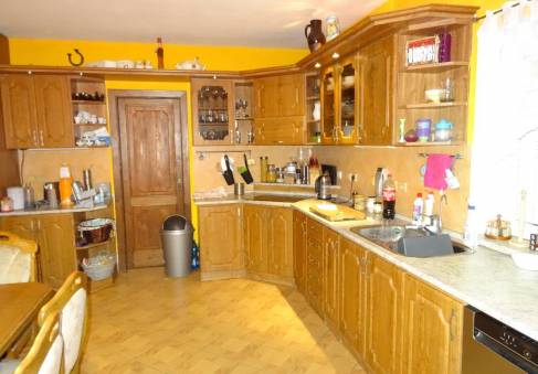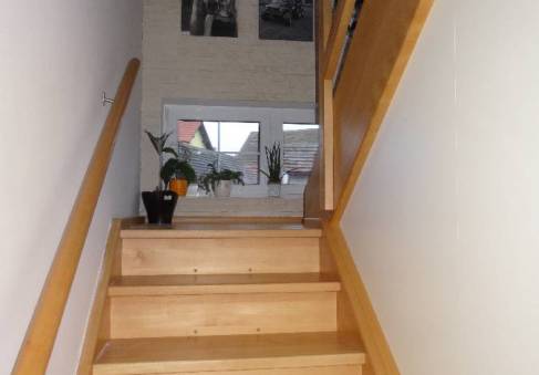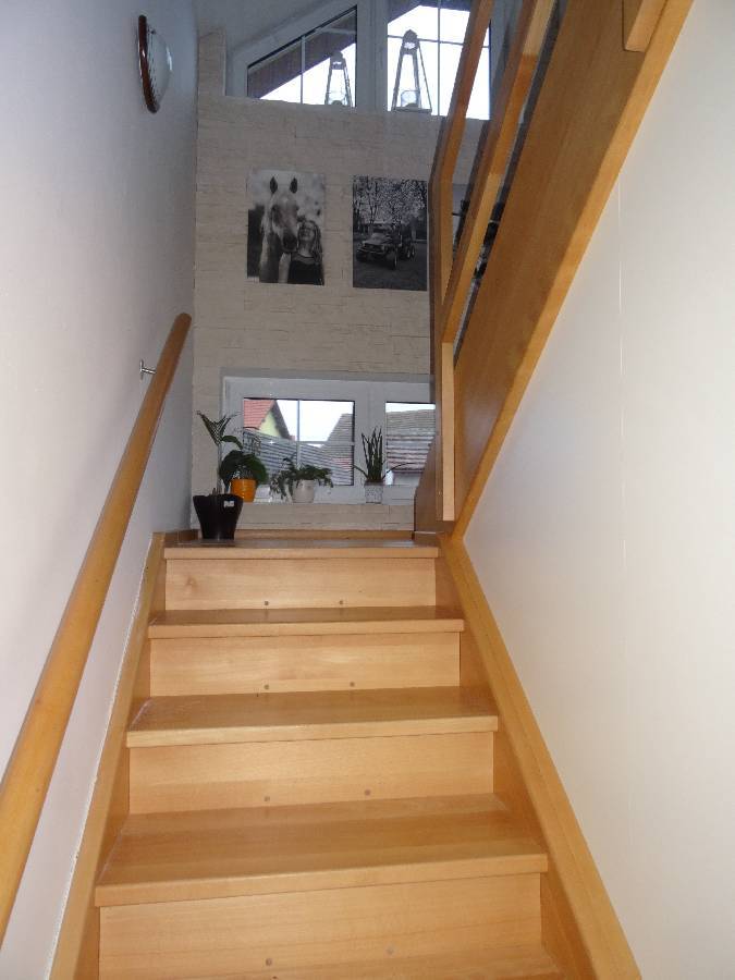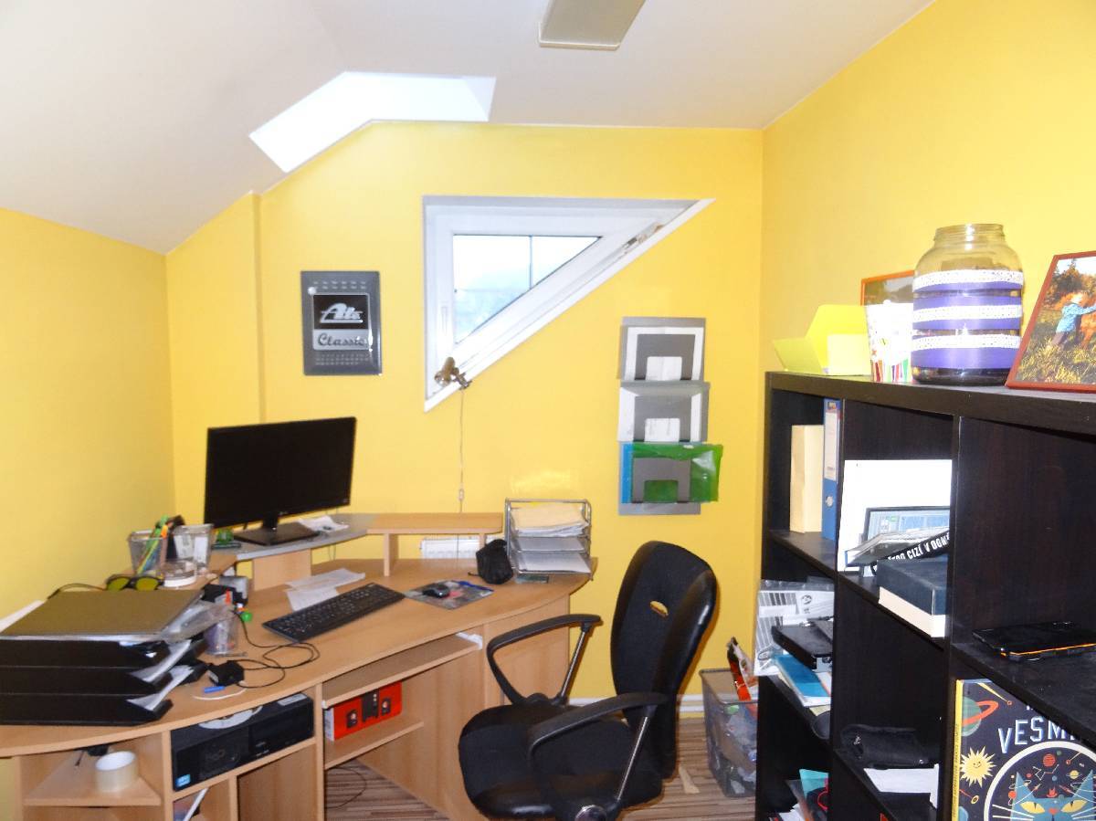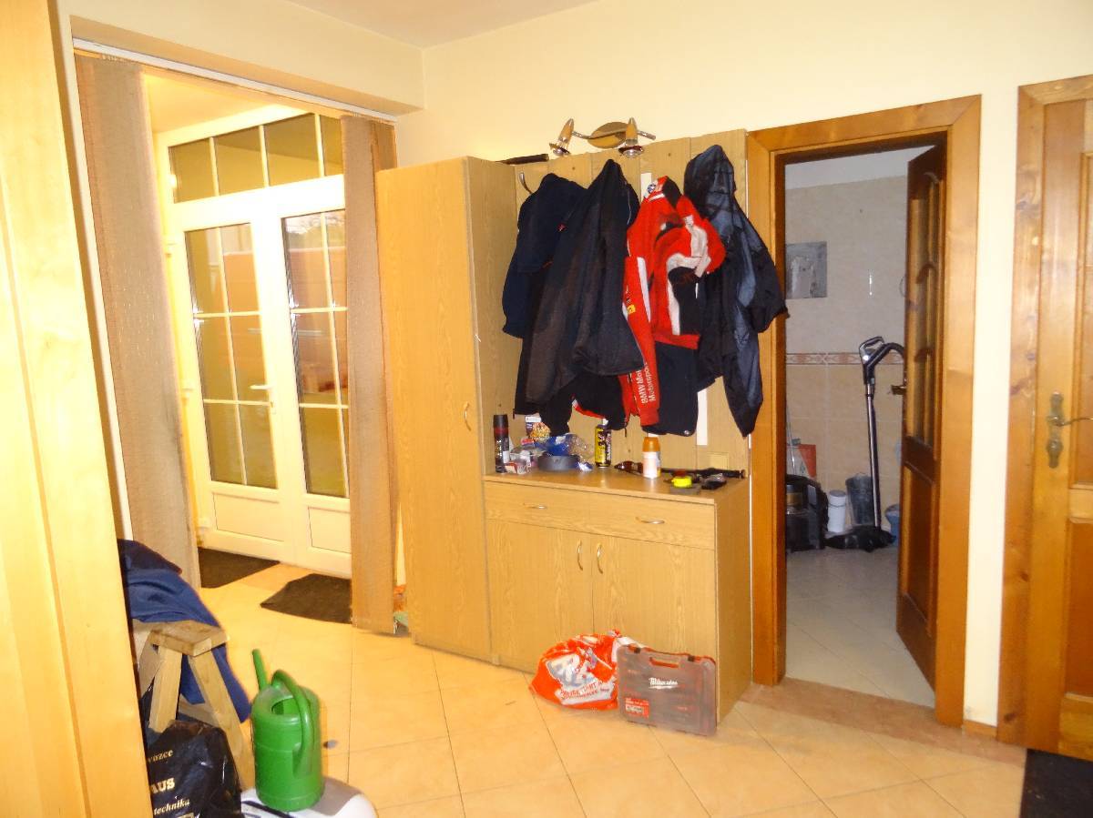Obklady běžné keramické, schody do podkroví betonové s dřevěným obkladem, okna plastová, podlahy keramická dlažba, PVC, plovoucí laminátová. Vytápění ústřední teplovodní do radiátorů kotlem na topnou naftu, doplňkově krbem. Elektroinstalace světelná, třífázová, zdroj teplé vody je bojler. Plyn není.