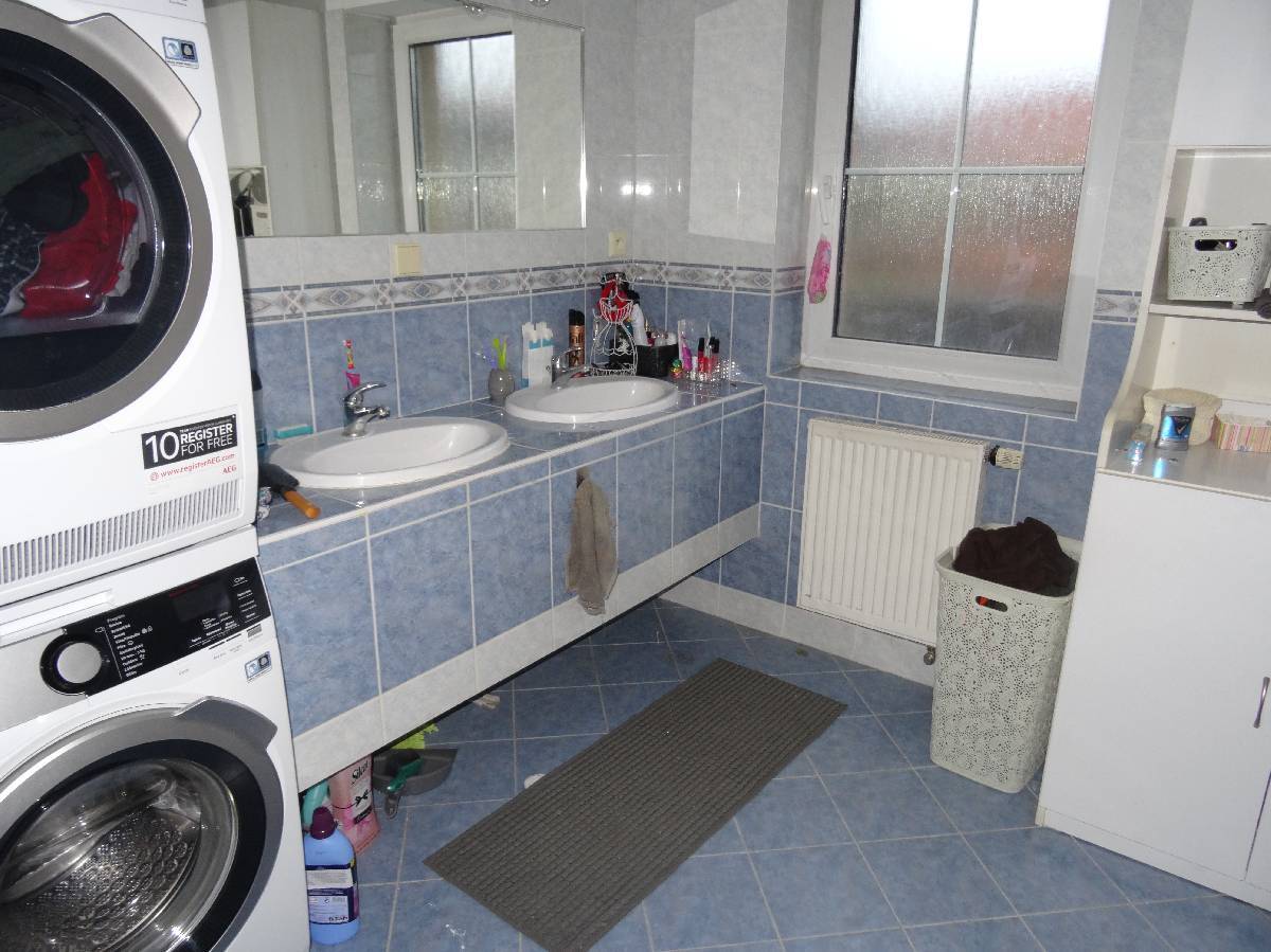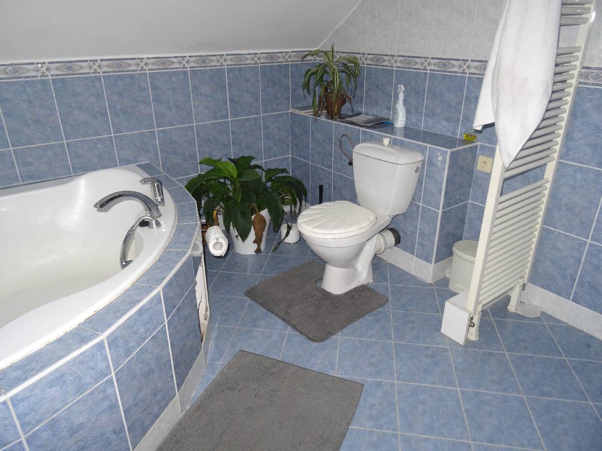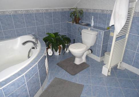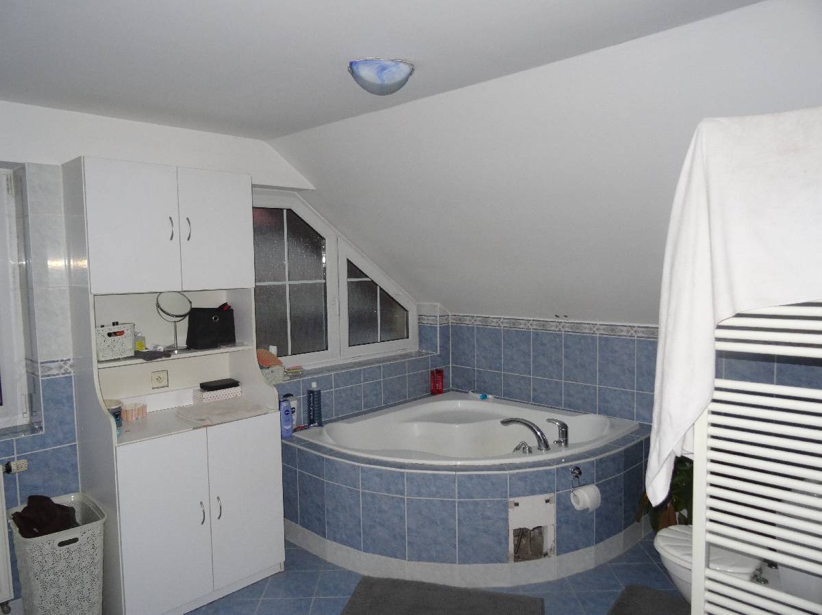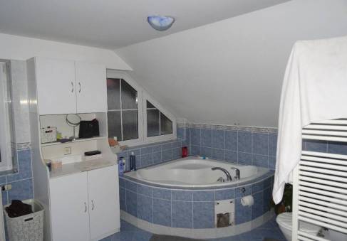 Vnitřní vybavení – v přízemí sprchový kout, umyvadlo, WC, v podkroví vana, dvě umyvadla, WC.