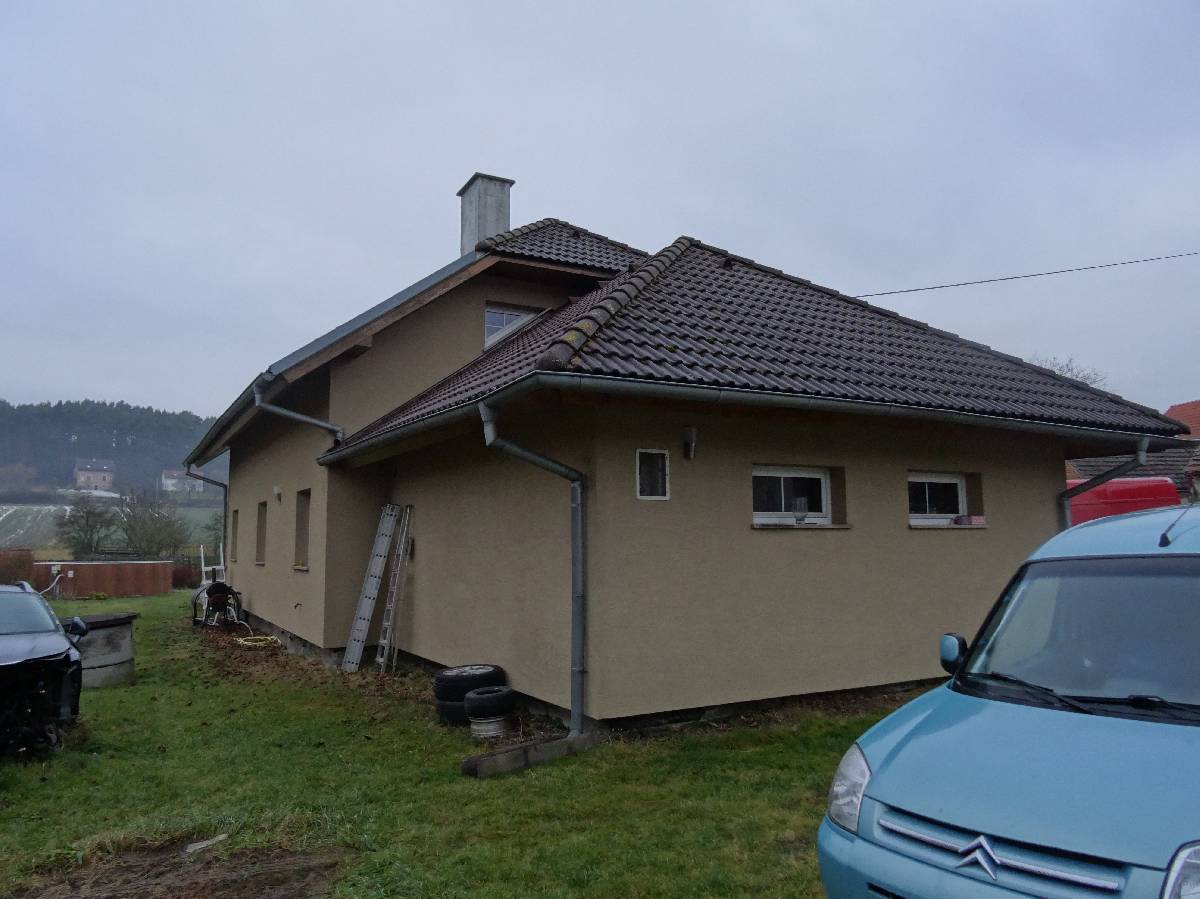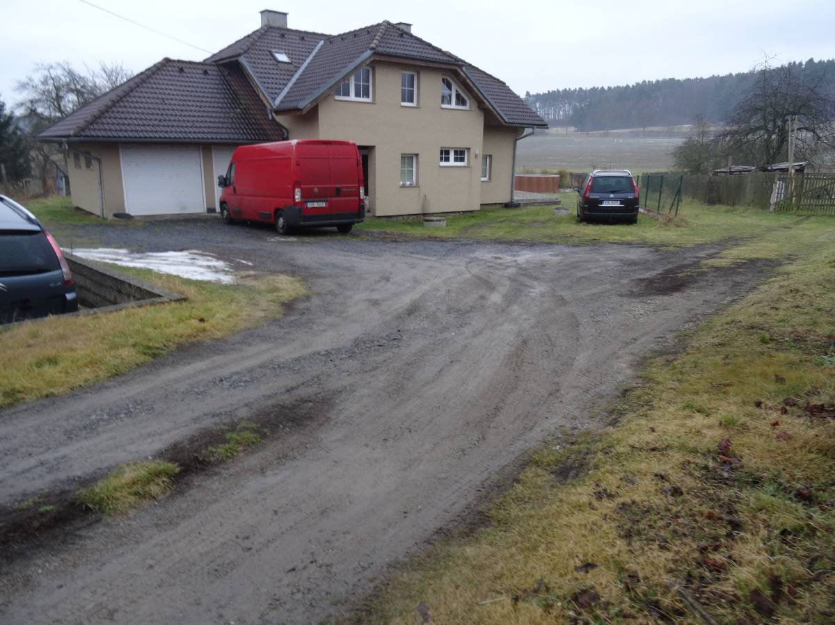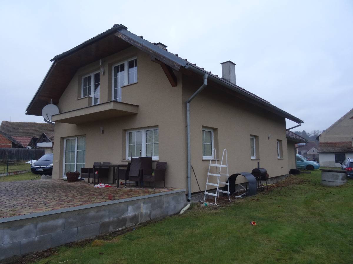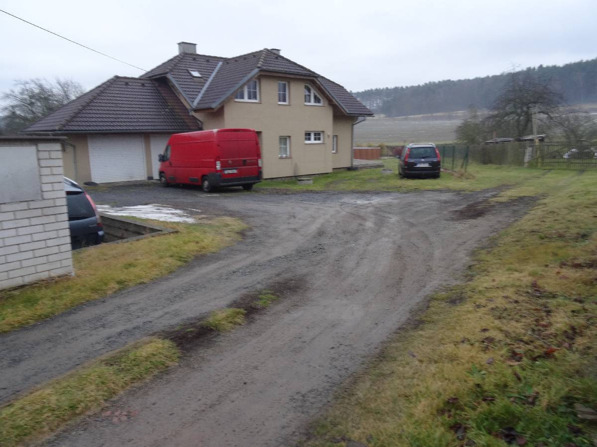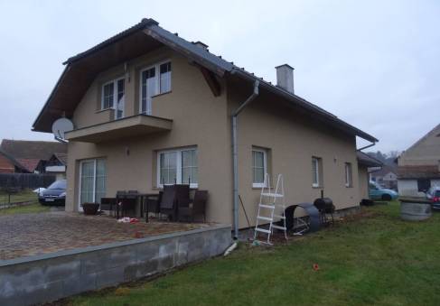 Rodinný dům o dispozici 5+1 je samostatně stojící, nepravidelného půdorysu, u štítu domu je dlážděná terasa, u severní hranice pozemku stojí zděný sklad. Odkanalizování rodinného domu dle sdělení do jímky na vyvážení, voda ze studny, elektroinstalace zavedena, bez plynu.