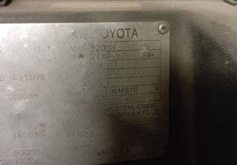 Vysokozdvižný elektrický vozík Toyota, 7FBMF16, 920 mm, rok výroby 2003